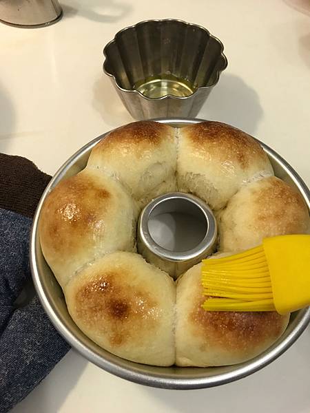 烤10分鐘後拿出來擦蛋白(增加亮度)